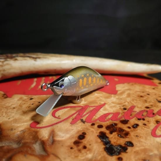 山岳渓流での使用を前提とした基盤リップ+太軸ワイヤーのハード仕様。ボディーにはタバコ銀紙・フェイスはアルミシートを貼り、異なったフラッシング効果を生み出します。ワイドボディーがその存在をターゲットにアピールしトゥイッチ時に機敏なヒラ撃ちが可能。短い移動距離で確実なアピールが出来ます。